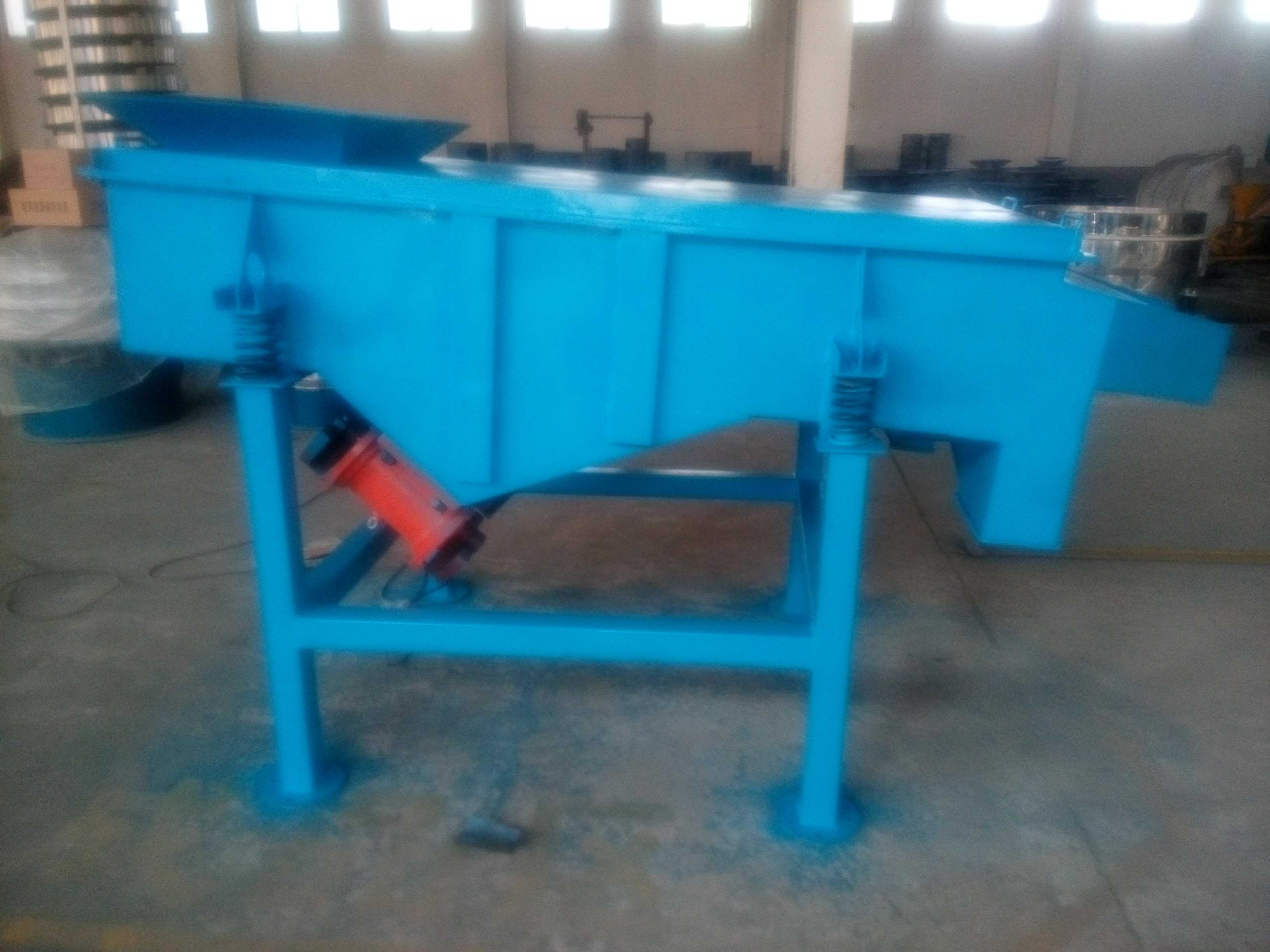 方形振動篩在啟動篩機前,應檢查周圍是否有妨礙篩機運轉(zhuǎn)的障礙物,各處聯(lián)接螺栓是否緊固,尤其是振動電機、支承座、篩板的固定螺栓要重新緊固一遍。檢查兩臺振動電機的轉(zhuǎn)向是否相反,如轉(zhuǎn)向相同,應變更一臺電機的電源接線,使兩臺振動電機的轉(zhuǎn)向相反。方形振動篩運轉(zhuǎn)時,先空載啟動、運行、停車一次觀察有無異常現(xiàn)象及聲響,空運轉(zhuǎn)時應平穩(wěn)正常。連續(xù)空運轉(zhuǎn)4小時后,測量軸承溫度,軸承溫度不得超過75度;并將各部位聯(lián)接螺栓重新緊固一次,以后再反復進行2-3次帶料運轉(zhuǎn)時,給料要均勻,使物料在篩面上均勻分布,如物料“跑偏”,