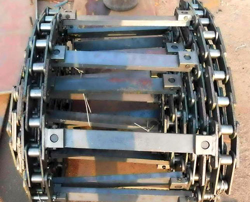 | 刮板鏈條運行時嘈聲過大。 | 1. 有硬物料落入機槽 2. 某節(jié)鏈條松動或不靈活。 | 1. 清除雜物。 2. 更換鏈節(jié) |