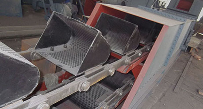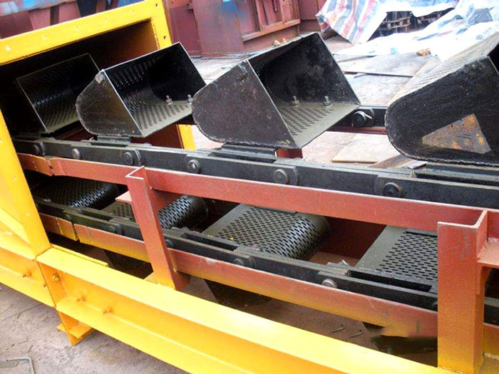 脫水斗式提升機(jī)是選煤廠和鈣鎂磷肥廠常用的機(jī)械設(shè)備之一,具有結(jié)構(gòu)簡單、運(yùn)轉(zhuǎn)可靠的優(yōu)點(diǎn)。通常兼有脫水和運(yùn)輸雙重作用??勺鳛榻K脫水設(shè)備,也可作為初步脫水設(shè)備。它適用于提升洗滌后的中煤、矸石和冷卻后的鈣鎂磷肥,也適用輸送洗滌后的其他塊狀或顆粒狀的物料,物料在提升輸送過程中,可在重力作用下自行脫水。對于大塊物料及水分要求不太嚴(yán)格的產(chǎn)品,如跳汰分選作業(yè)的中煤、矸可用脫水斗式提升機(jī)直接作為zui終脫水設(shè)備,獲得終出廠產(chǎn)品。對粒度較細(xì)、或脫水不太容易、水分又要求比較嚴(yán)格的產(chǎn)品,脫水斗式提升機(jī)可作為初步脫水設(shè)備。如粗煤泥回收作業(yè)中,撈坑沉淀的煤泥可先經(jīng)脫水斗式提升機(jī)初步脫水,再進(jìn)一步用脫水篩和離心脫水機(jī)作zui終脫水。