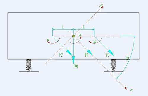 橢圓振動篩電動機(jī)通過傳動帶驅(qū)動齒輪箱式同步器使三軸強(qiáng)迫同步,其中中間軸與兩側(cè)軸轉(zhuǎn)向相反,相應(yīng)帶動三組塊偏心式振動器篩箱的座式安裝振動篩。篩箱運(yùn)動軌跡為橢圓形,電動機(jī)可左裝或右裝 。
