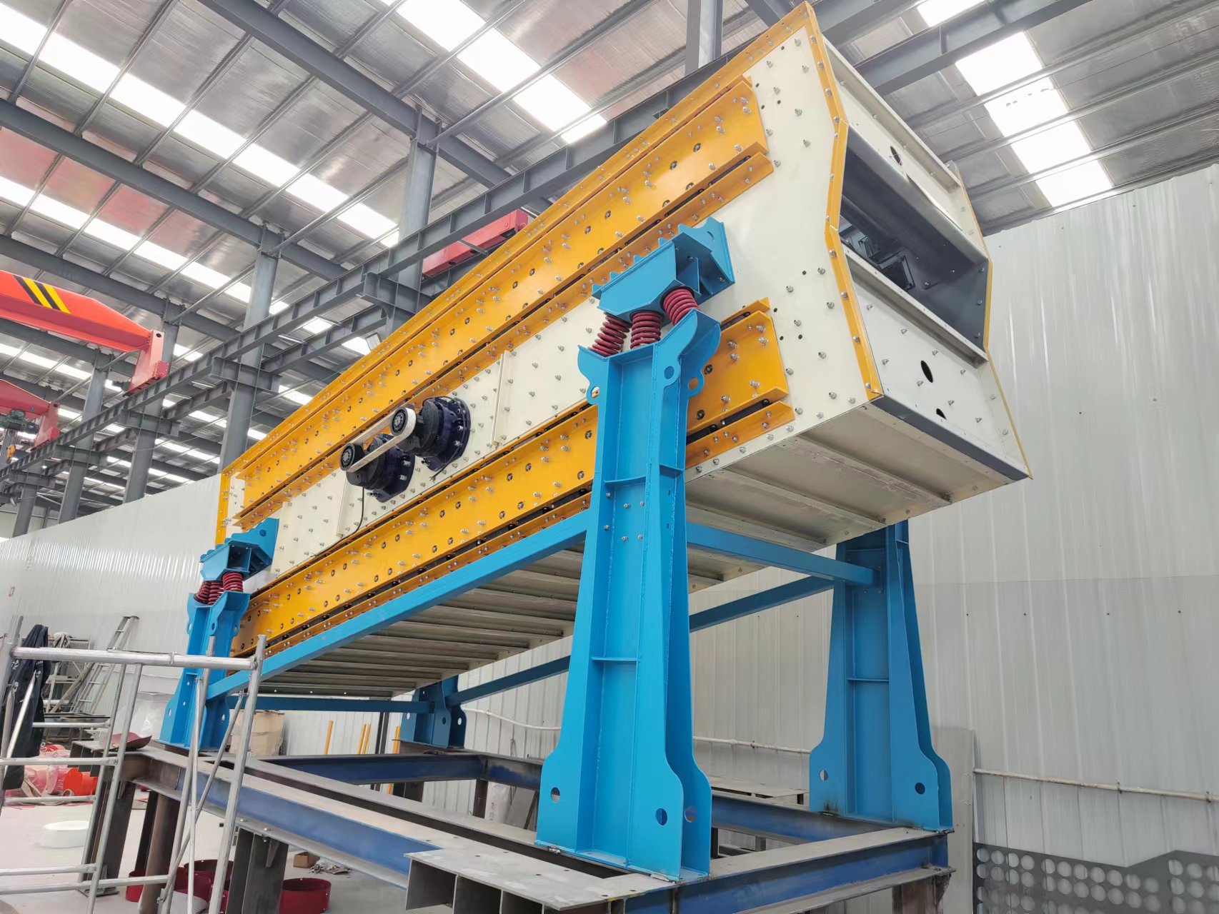 第二:弛張篩篩分物料振動(dòng)強(qiáng)度大,由于雙重振動(dòng)原理可使篩分物料產(chǎn)生50g的振動(dòng)強(qiáng)度,而普通振動(dòng)篩只能到達(dá)5g的振動(dòng)強(qiáng)度,所以弛張篩能到達(dá)很高的篩分效率。